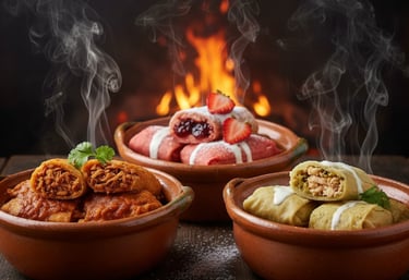 Handmade with slow-cooked, marinated pork with green olive, carrot, and potato and fresh masa.